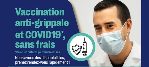 Prenez rendez-vous dès maintenant pour la vaccination influenza (sans frais) et COVID19 (sans frais selon critères gouvernementaux) à notre Pharma-Clinique!